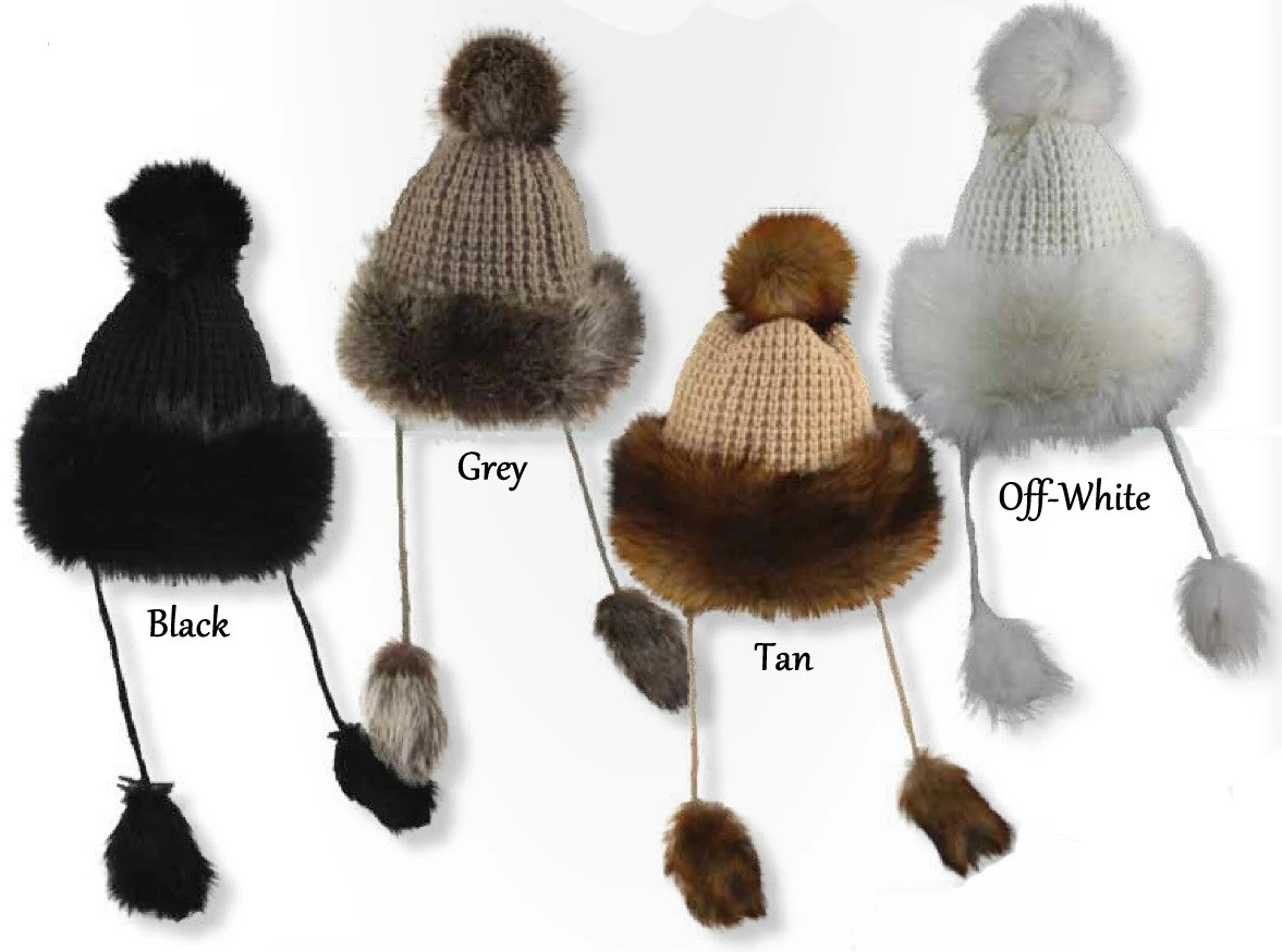 This cozy & cute women’s crocheted trapper hat is trimmed in fluffy faux fur and is lined with polar fleece for extra warmth!