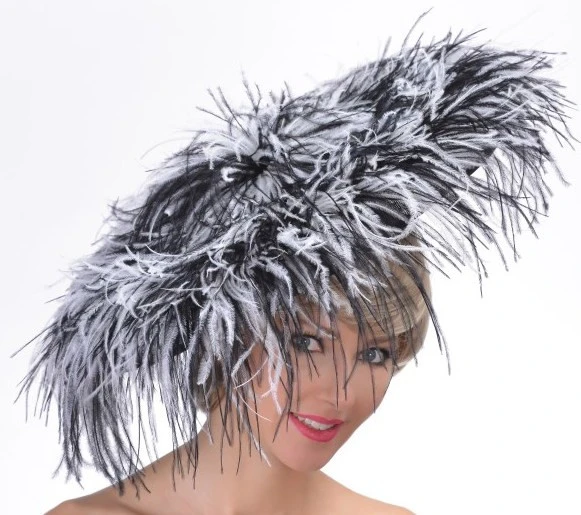 Fantastic Feather Giant Dish Fascinator covered with ostrich hurl feathers. Attaches with One Size Fits Most headband.