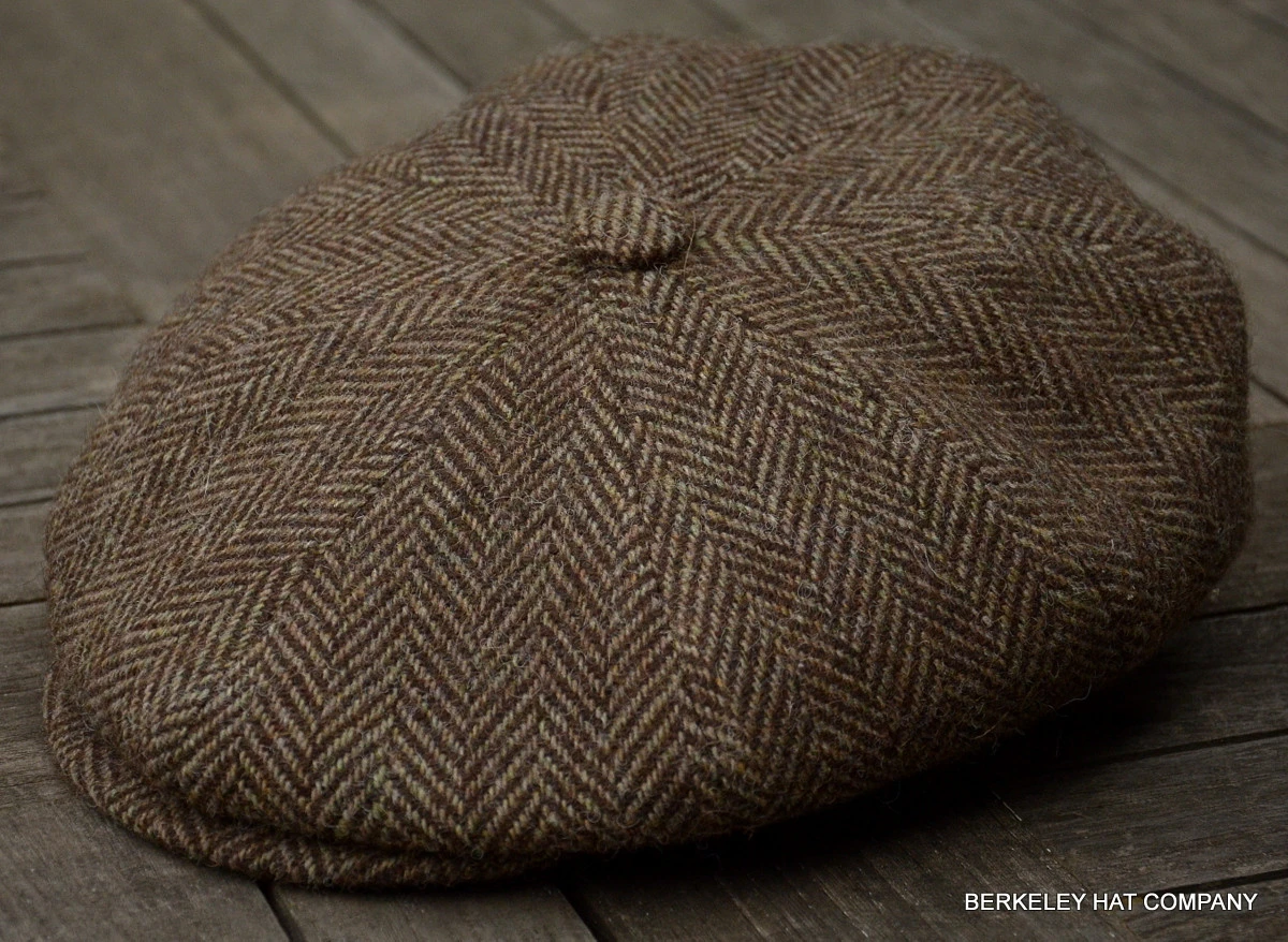 This brown 100% wool tweed herringbone cabbie motoring cap is a bit heavier than the regular weight for added warmth.