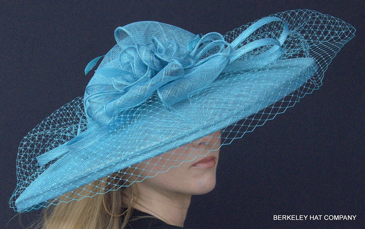 Spectacular sinamay derby hat has loops and bows of sinamay straw with netting.