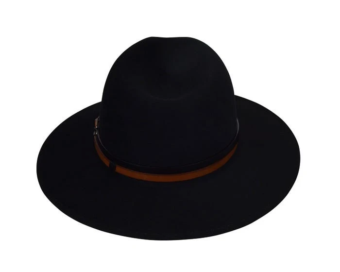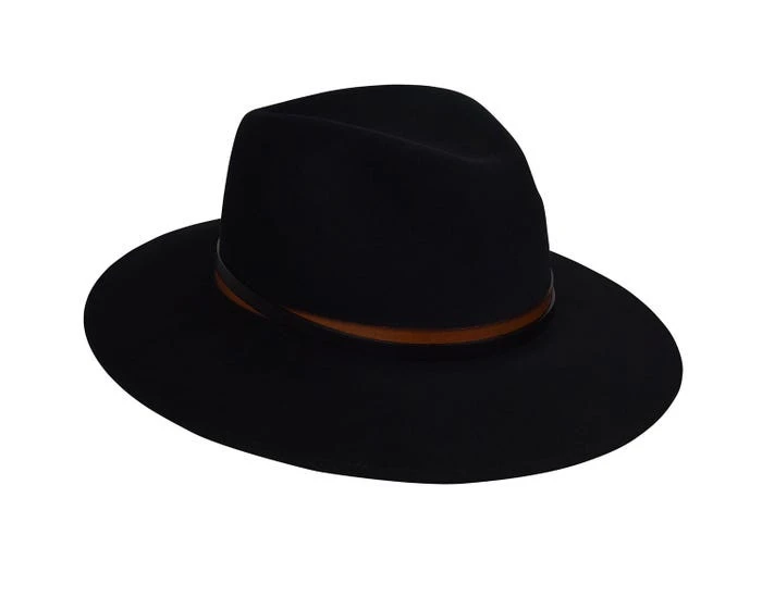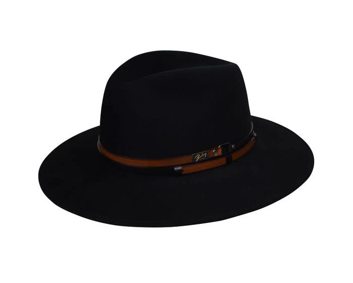 Double wrapped leather band with stitched on wood-chip “Bailey” logo.