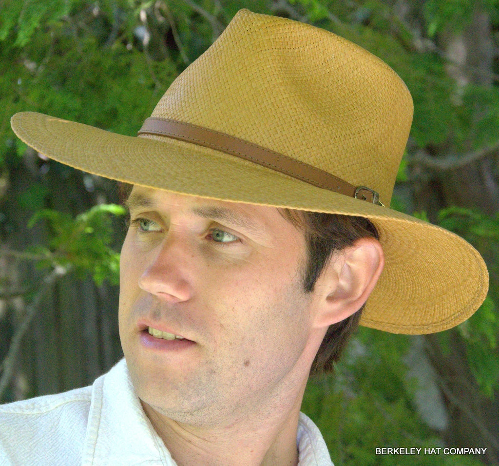 Wide brim Panama hat with a leather band from Bigalli Hats.