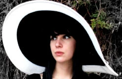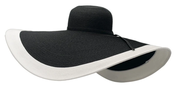 Black and white spectator derby hat with big wide 8 inch brim for the Kentucky derby.